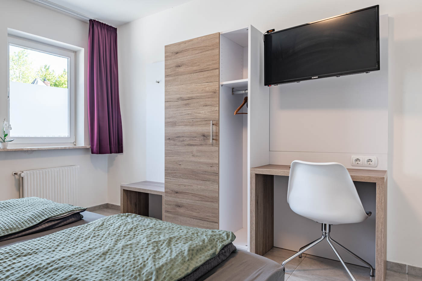 Our Double Room is designed for two guests who want to combine comfort with affordability. The room features a cozy double bed, modern furniture, and a bright atmosphere with plenty of natural light. It is a practical choice for couples, friends, or business travelers.